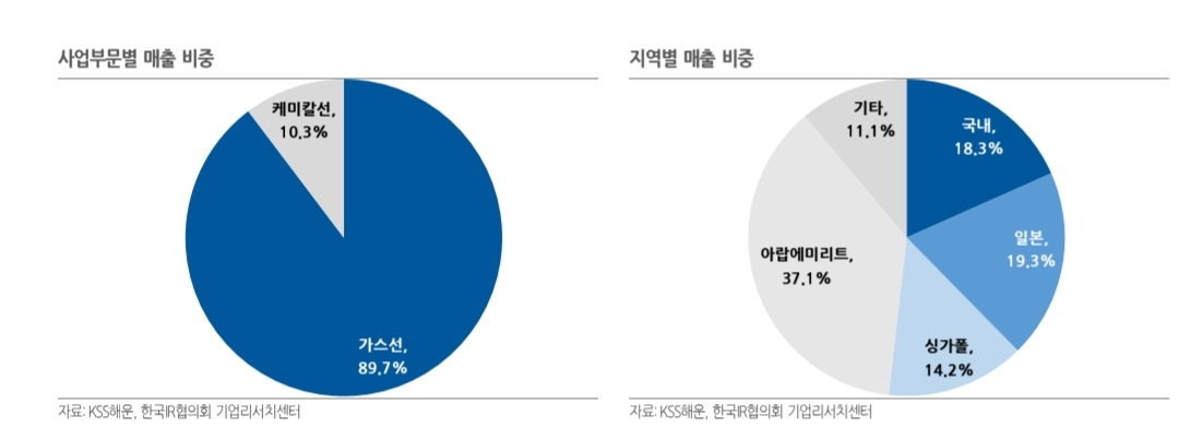 아래 한국IR협의회 자료에 의하면, 약 90퍼센트 매출이 LPG운송으로부터 발생하는 것을 알 수 있습니다.